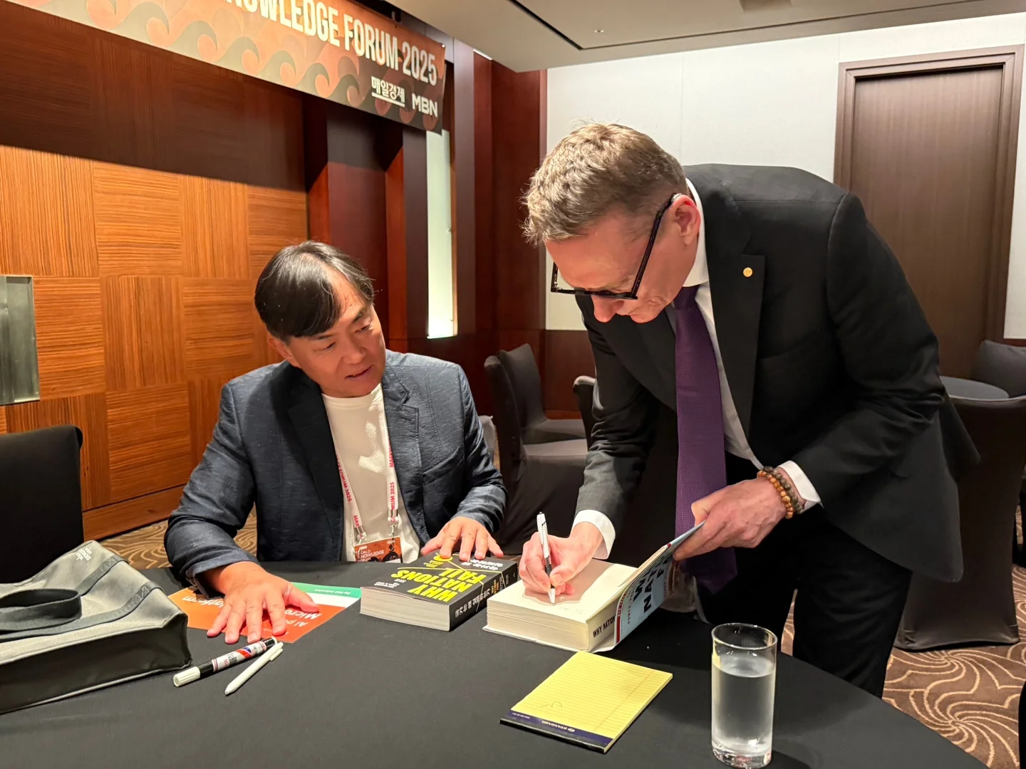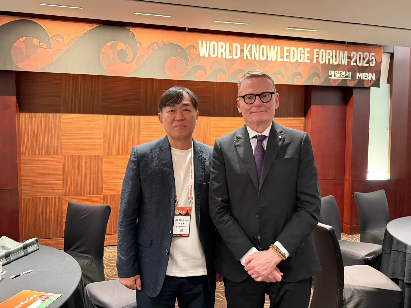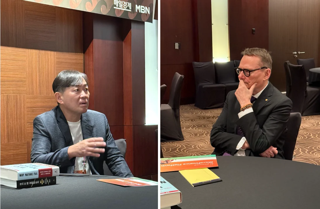 어피닛(Afinit) 이철원 대표와 세계적 경제학자 제임스 로빈슨의 만남이 9월 9일 서울에서 열린 매경세계지식포럼(WKF 2025) 현장에서 성사됐다. 전 세계 전문가들이 모인 지식포럼 일정이 끝난 뒤, 두 사람은 별도의 자리에서 인도 핀테크의 현재와 혁신, 그리고 밸런스히어로가 이끌어온 금융 포용의 의미를 주제로 깊이 있는 대화를 나눴다.