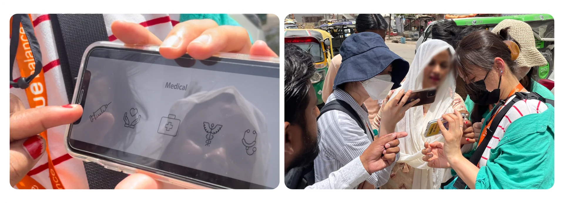이러한 문제의식을 바탕으로, 우리는 시각적 정보가 이해를 돕는 데 효과적일 것이라 판단하고 아이콘을 활용한 표현 방식을 도입해보기로 했습니다. 대출 목적별로 다섯 가지 각기 다른 아이콘을 제작한 후, 트루밸런스 오프라인 부스 현장에서 실제 타겟 고객들을 대상으로 테스트했습니다. 스마트폰 화면을 통해 아이콘을 보여주고 여섯 명의 고객 피드백을 수집했는데요, 이 과정에서 감사하게도 주변 시민들이 자발적으로 힌디어를 통역 도움을 주셔서 덕분에 고객 의견을 원활하게 수집할 수 있었습니다.