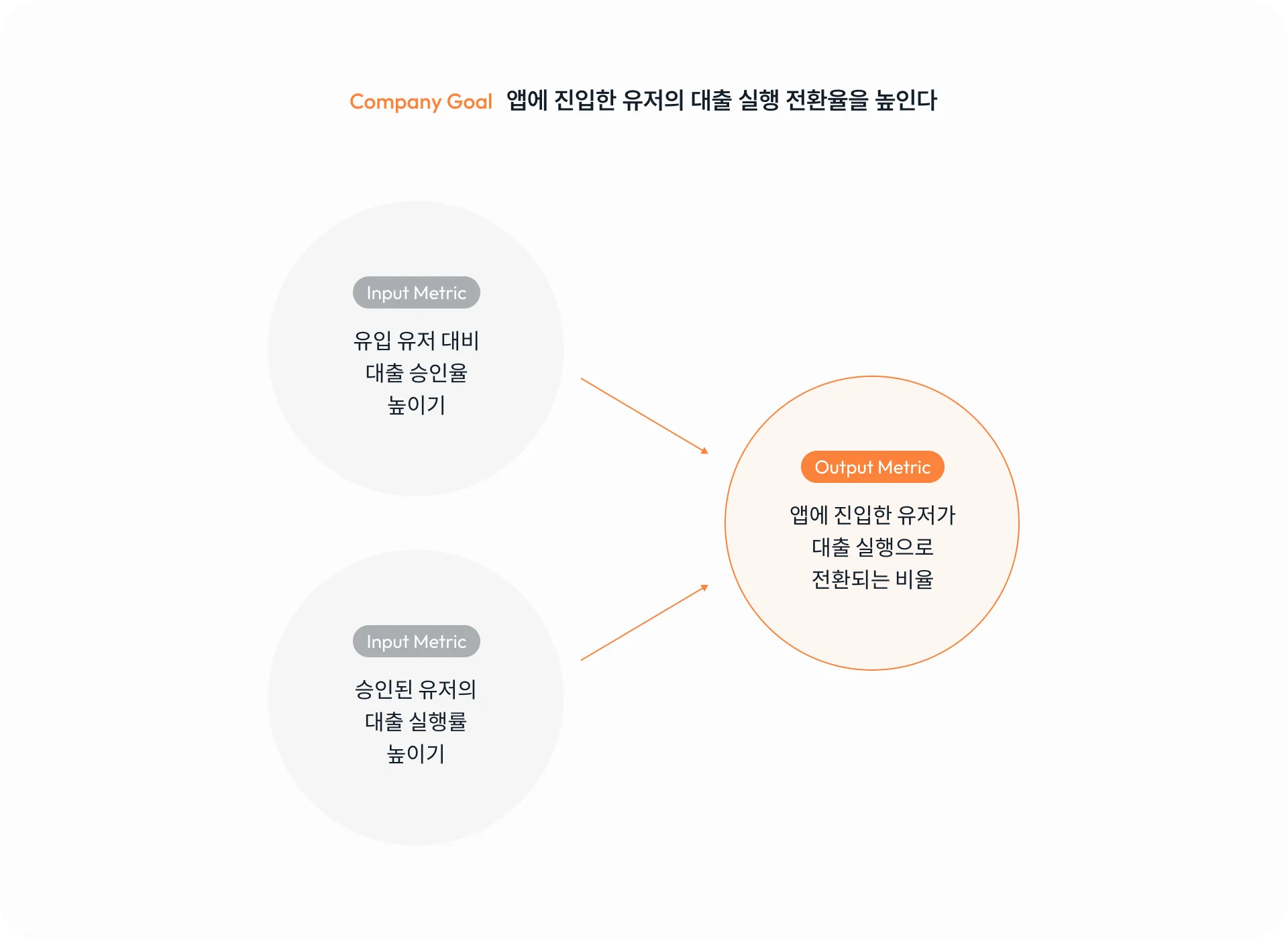 그렇다면 대출 전환율을 높이기 위해 선정한 Key-Metric은 무엇이었을까요? 바로 앱에 진입한 유저의 대출 신청, 승인 및 실행을 최대화하는 것이었습니다. 승인 가능한 유저는 승인 단계까지, 승인된 유저는 대출 실행까지 유도하고 중도 이탈을 최소화함으로써 앱 사용자에게 더 많은 대출을 제공하는 목표를 달성하고자 한 것이죠
